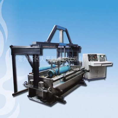 4、超聲波探頭液浸機械跟蹤系統(tǒng)自動跟蹤,驅動滾軸轉動帶動氣瓶旋轉前進,探傷機自動探傷,檢出內壁傷、外壁傷,縱向傷從左右兩個方向進行檢測,橫向傷從前后兩個方向同時進行檢測,測厚探頭檢出鋼瓶的厚度。