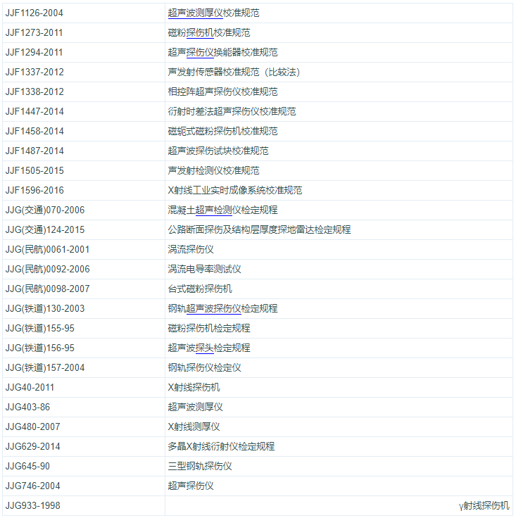 無損檢測儀器、設(shè)備和器材相關(guān)計(jì)量檢定規(guī)程和校準(zhǔn)規(guī)范目錄大全